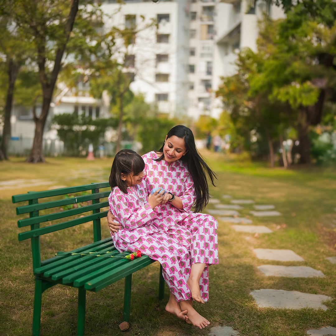 Pink Elephant Mom & kids Twinning Set
